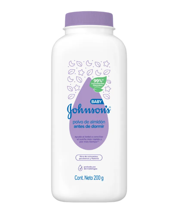 El talco JOHNSON’S Baby Antes de Dormir está especialmente formulado para ayudar a relajar al bebé antes del descanso. Su exclusiva fragancia NaturalCalm™, con suaves notas de lavanda y manzanilla, contribuye a un sueño tranquilo y reparador.